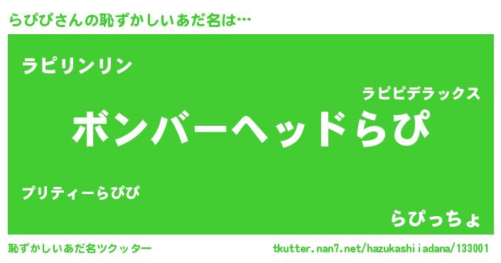 | ヘコむあだ名 | 『らぴっ子』『なまこ酢』 |