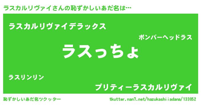 | 欧米人風あだ名 | 『ラスカルリヴァイクリステル』 |