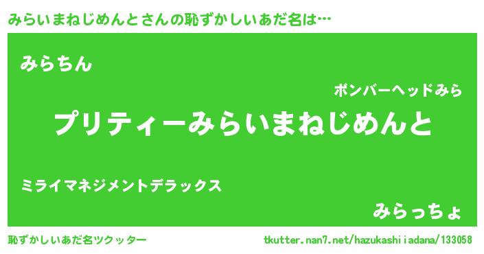 | ヘコむあだ名 | 『みらにー』『みらいまねじめんと(笑)』 |