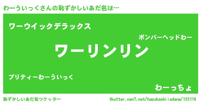 | ポケモン風あだ名 | 『ヒワーウイック』『ワーーイ』 |