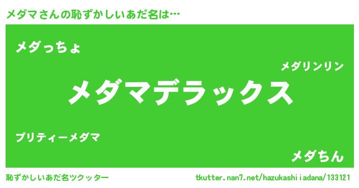 | ヒーロー風カッコイイあだ名 | 『ウルトラ戦士メダマ』『ネオメダマ』 |