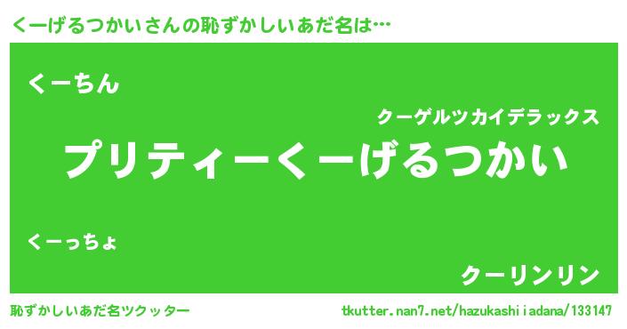 | ヘコむあだ名 | 『くーふぇ~』『くーげるつかい(爆)』 |