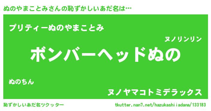 | 女子向けラノベタイトル風あだ名 | 『ぬのやまことみ恋絵巻』 |