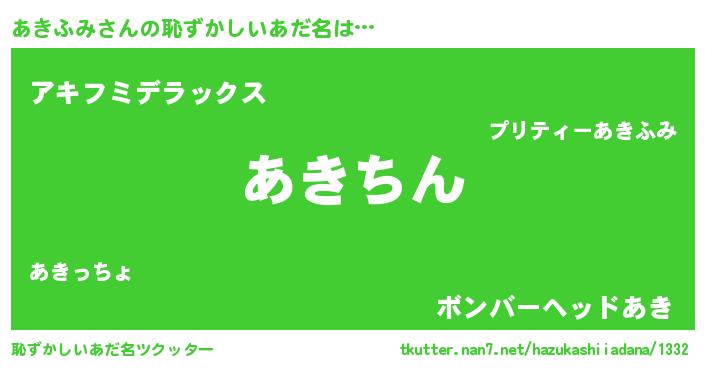 | 意味不明あだ名 | 『住所不定無職あきふみ(8歳)』 |