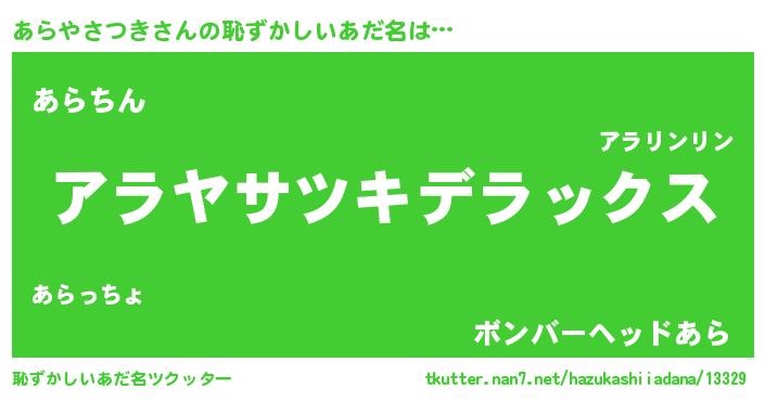 | 意味不明あだ名 | 『自称あらやさつき』 |
