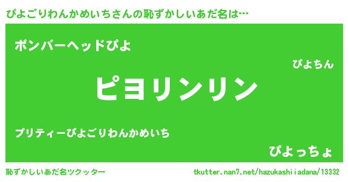 | 男性向けラノベタイトル風あだ名 | 『ぴよごりわんかめいちに滅ぼされるだけの簡単なお仕事です』 |