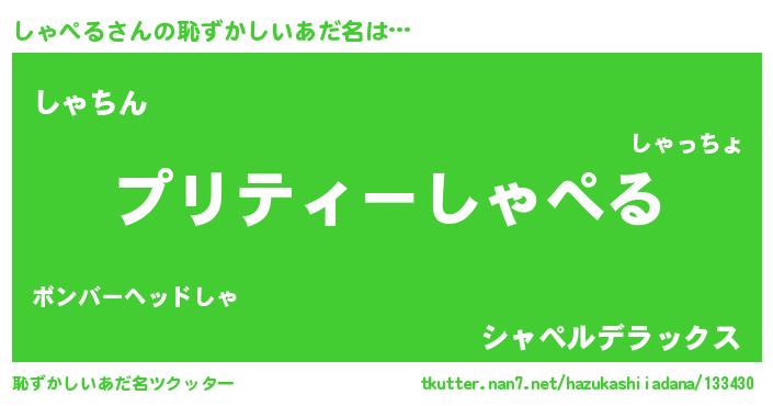 | 胡散臭い通販商品みたいなあだ名 | 『必ず成功する霊験あらたかなお札…その名も「しゃぺる」』 |