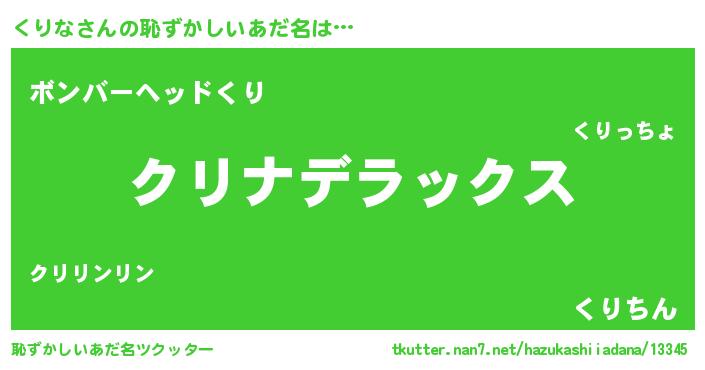| ヒーロー風カッコイイあだ名 | 『超時空戦士クリナ』『仮面クリダー』 |