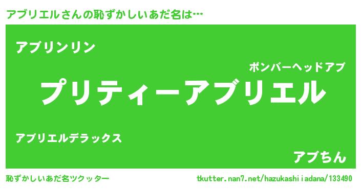 | 男性向けラノベタイトル風あだ名 | 『アブリエルアートオンライン』 |