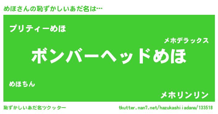| ヘコむあだ名 | 『めほにゅー』『めほっ子』 |