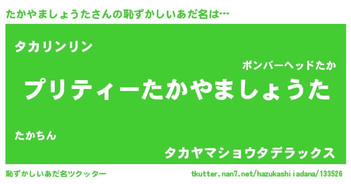 | ヒーロー風カッコイイあだ名 | 『スーパータカヤマショウタ』 |