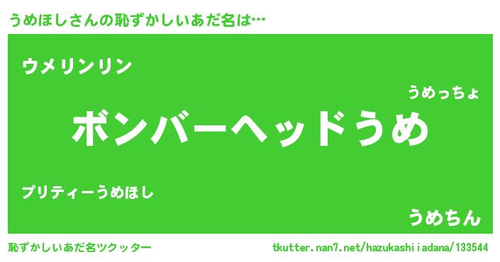 | ヘコむあだ名 | 『うめを』『うめほし(苦笑)』 |