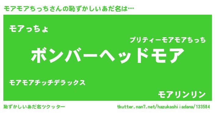| 男性向けラノベタイトル風あだ名 | 『うちのモアモアちっちが世界を掌握している!』 |