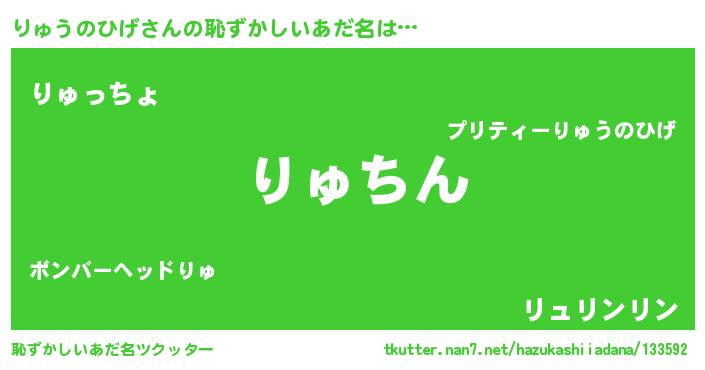 | ヒーロー風カッコイイあだ名 | 『ネオリュウノヒゲ』『黄金騎士リュ』 |
