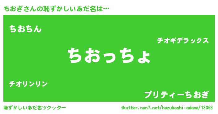 | ヘコむあだ名 | 『なまこ酢』『ちおぎ(笑)』『ちおお』 |