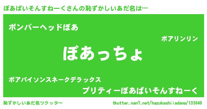| 意味不明あだ名 | 『ぼあぱいそんすねーくフォーエバー』 |