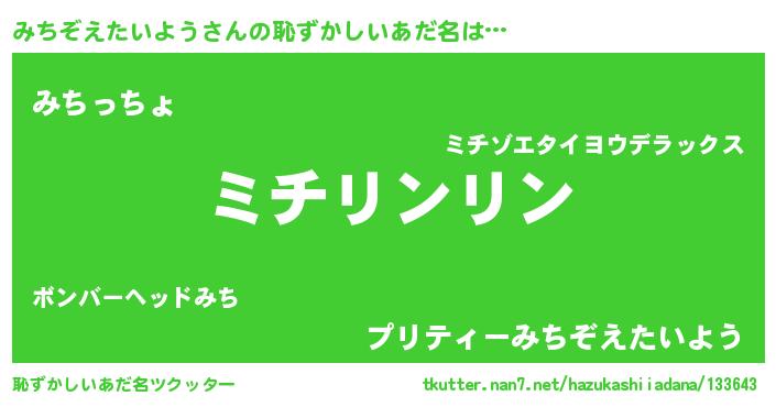 | 意味不明あだ名 | 『とにかく怪しいみちぞえたいよう』 |