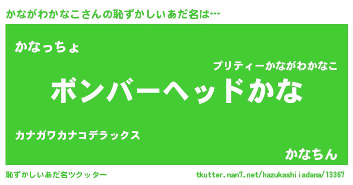 | 男性向けラノベタイトル風あだ名 | 『おまえをオタクにしてやるから、俺をかながわかなこにしてくれ! 』 |