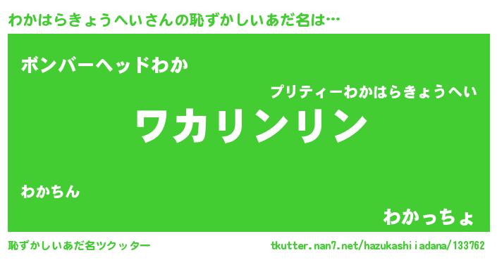 | ポケモン風あだ名 | 『ヒワカハラキョウヘイ』『ワカキング』 |