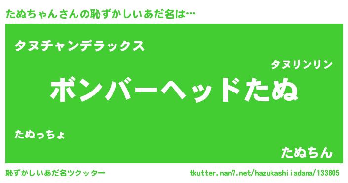 | ヘコむあだ名 | 『たぬちゃん(爆)』『たぬ太郎』 |