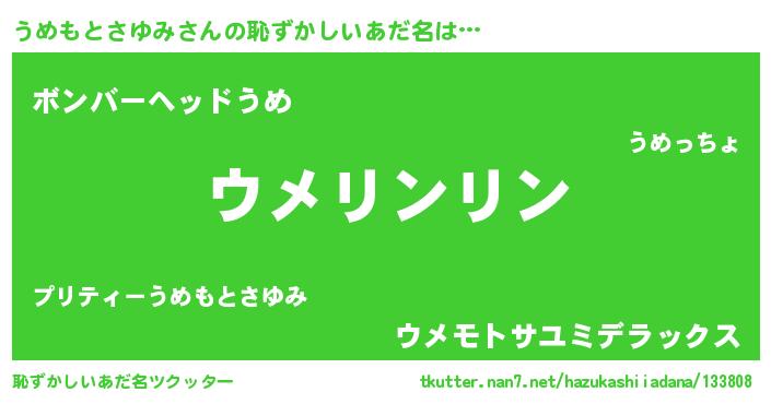 | ヘコむあだ名 | 『うめっちょ』『つくし』『うめもー』 |