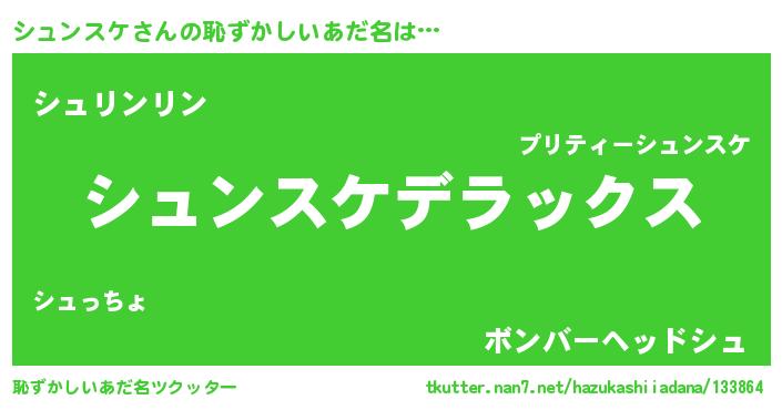| 男性向けラノベタイトル風あだ名 | 『Re:シュンスケから始める異世界生活』 |