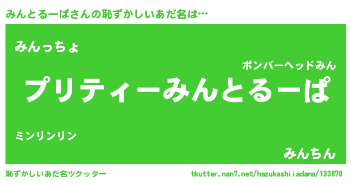 | ヘコむあだ名 | 『みんにゅー』『牛乳』『みんっ子』 |