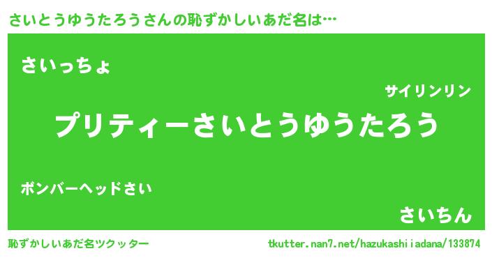 | 男性向けラノベタイトル風あだ名 | 『サイトウユウタロウアートオンライン』 |