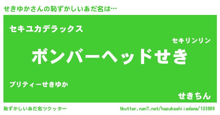 | ヒーロー風カッコイイあだ名 | 『仮面セキダー』『正義の使者せきゆか』 |