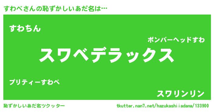 | 意味不明あだ名 | 『自称すわべ』『永久保存すわべ』 |
