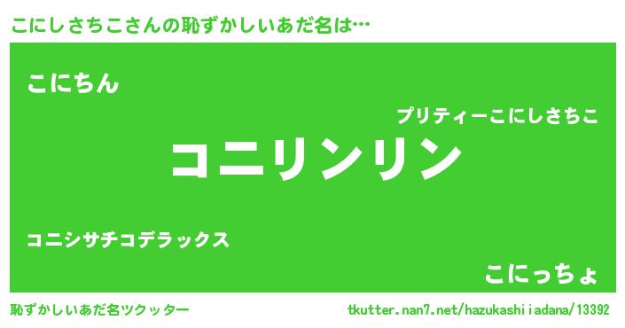 | ヒーロー風カッコイイあだ名 | 『天弓騎士コニ』『ネオコニシサチコ』 |