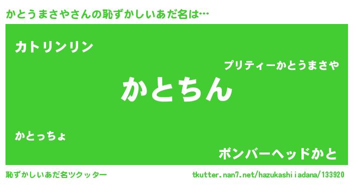 | ヘコむあだ名 | 『かとうまさや(小並感)』『かとお』 |