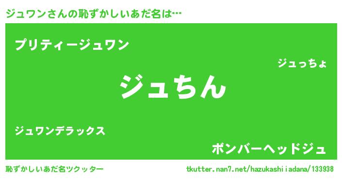 | ヘコむあだ名 | 『ジュワン(小並感)』『ジュにゅー』 |