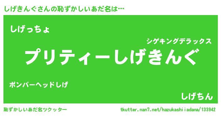 意味不明あだ名 | 『ペロリンしげきんぐ』『自称しげきんぐ』 |