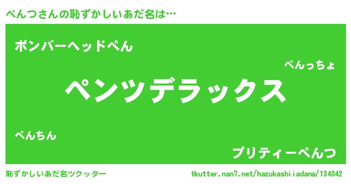 | 意味不明あだ名 | 『自称ぺんつ』『住所不定無職ぺんつ(6歳)』 |