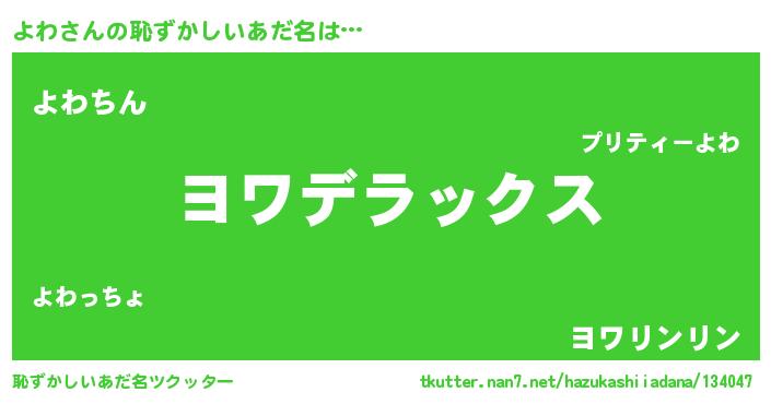 | 男性向けラノベタイトル風あだ名 | 『Re:よわから始める異世界生活』 |