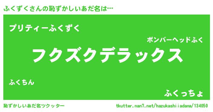 | 意味不明あだ名 | 『めかぶ科ふくずく属』『自称ふくずく』 |