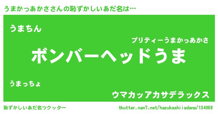 | ヘコむあだ名 | 『うまかっあかさ(苦笑)』『うまもー』 |