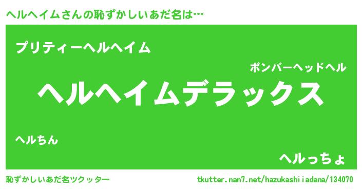 | 意味不明あだ名 | 『自称ヘルヘイム』『ペロリンヘルヘイム』 |