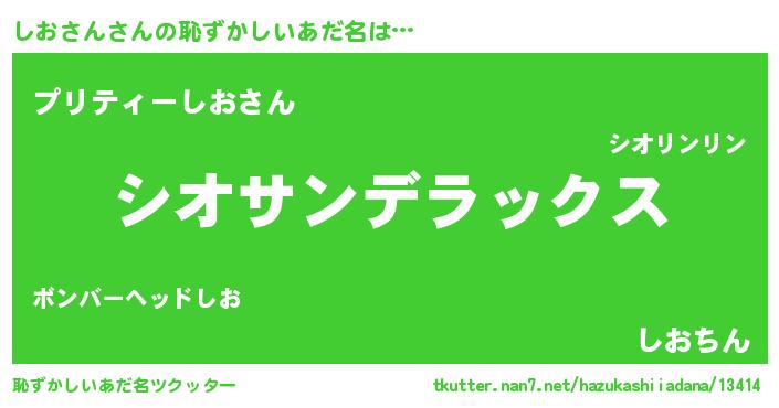 | 男性向けラノベタイトル風あだ名 | 『Re:しおさんから始める異世界生活』 |