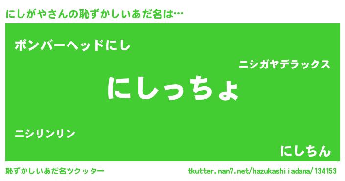 | 意味不明あだ名 | 『住所不定無職にしがや(13歳)』 |