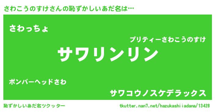 | 男性向けラノベタイトル風あだ名 | 『はたらくさわこうのすけさま!』 |