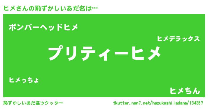 | 男性向けラノベタイトル風あだ名 | 『ヒメの憂鬱』『ノーゲーム・ノーヒメ』 |