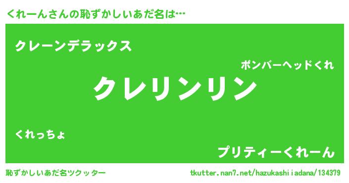 | 意味不明あだ名 | 『エリンギ科くれーん属』『自称くれーん』 |