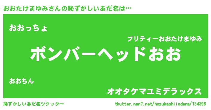 | 意味不明あだ名 | 『眠気覚ましガムおおたけまゆみ味』 |