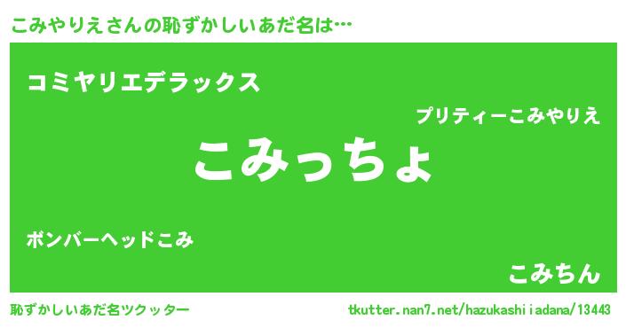 | 肩書あだ名 | 『こみやりえ中尉』『こみやりえ総理大臣』 |