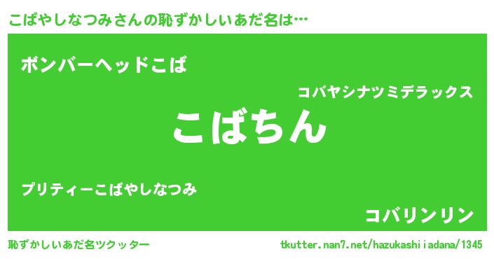 | ヘコむあだ名 | 『こばやしなつみ(小並感)』『こばっ子』 |