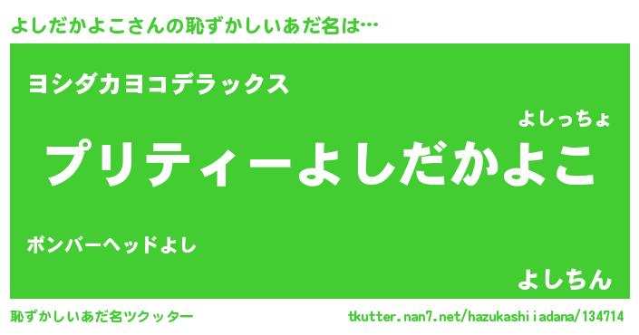 | ヘコむあだ名 | 『よしにー』『よしだかよこ(苦笑)』 |