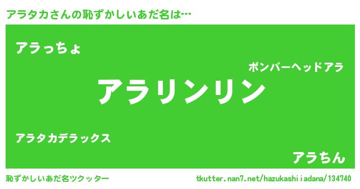 ヒーロー風カッコイイあだ名 | 『黄金騎士アラ』『ウルトラアラタカマン』 |