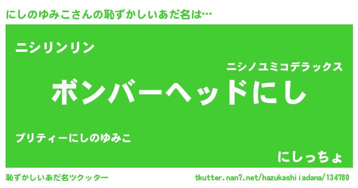 | ポケモン風あだ名 | 『ニックウザ』『ヒニシノユミコ』 |